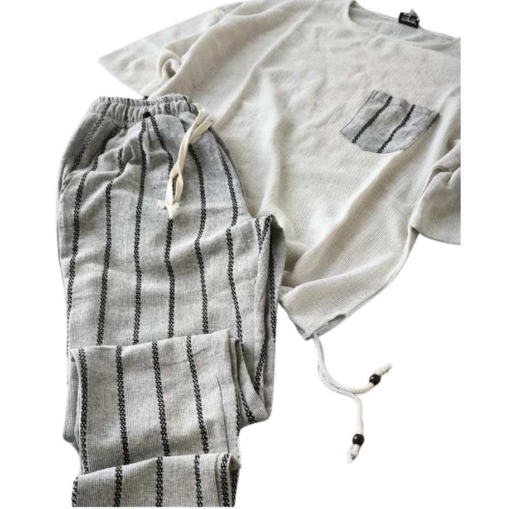 Kaliteli Pamuktan Buldan Keten Erkek Takım Beyaz/Gri Renklerde