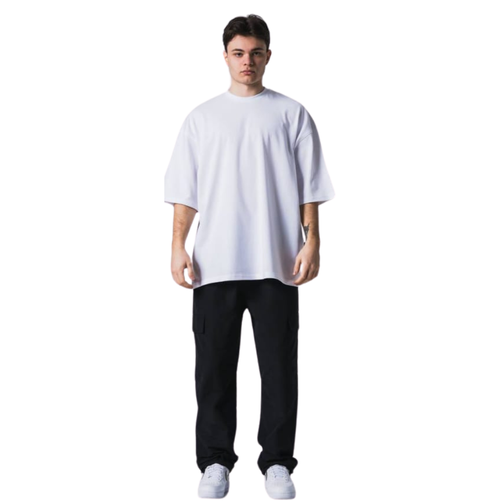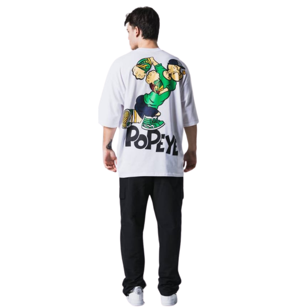 %100 Pamuk Owersize Kesim Sırt Baskılı T-Shirt Beyaz Renk