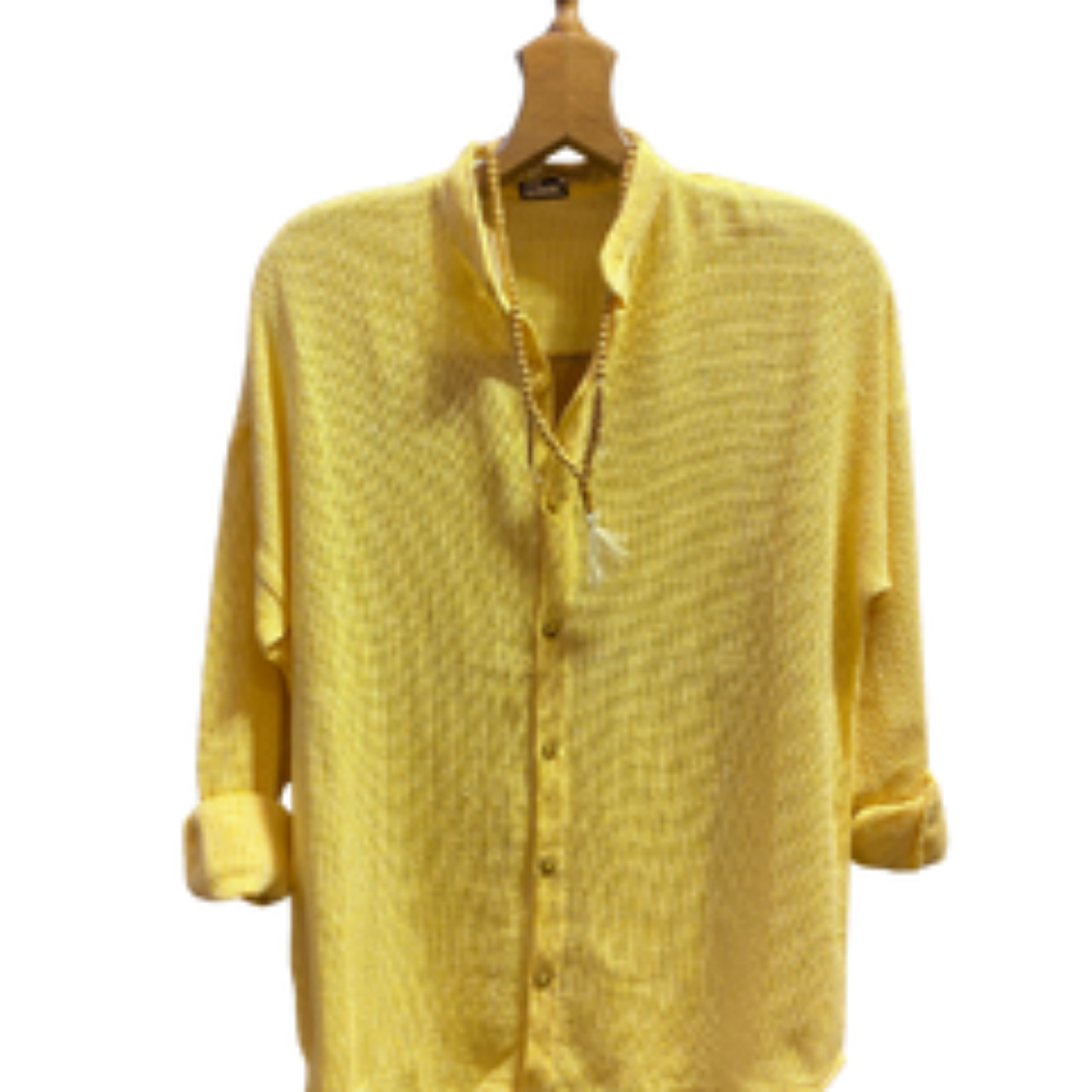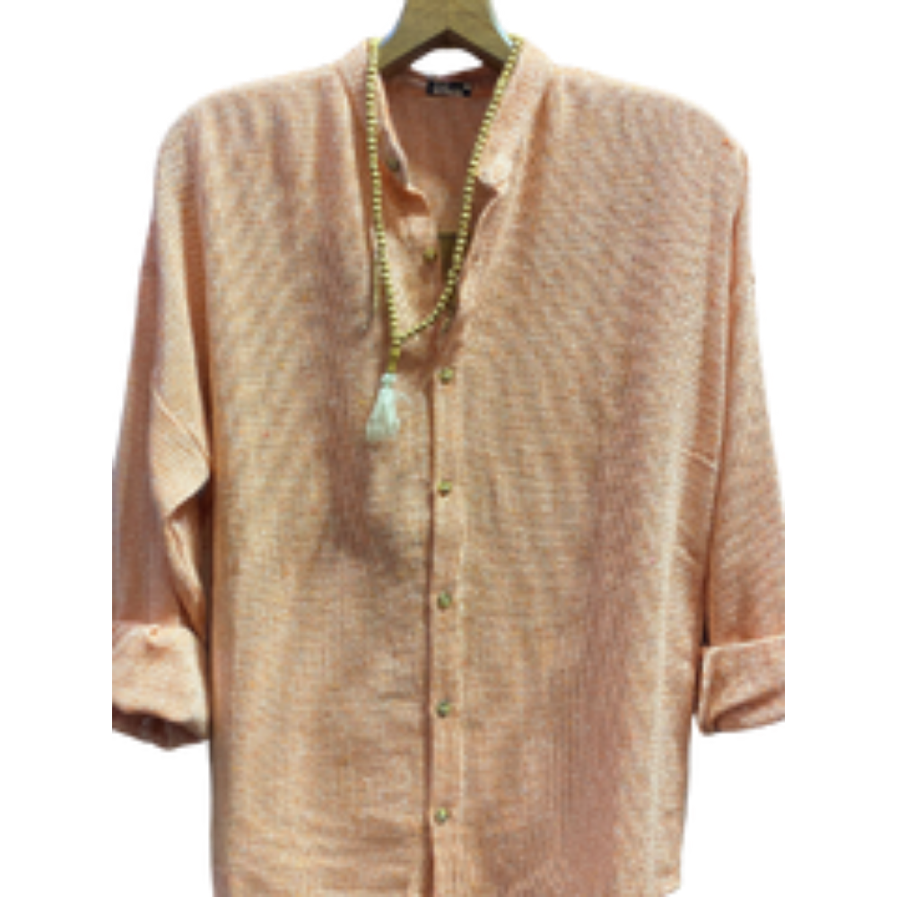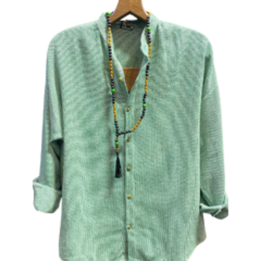 Owersize Kesim Buldan Erkek Keten Gömlek Yeşil/Sarı/Turuncu Renklerde