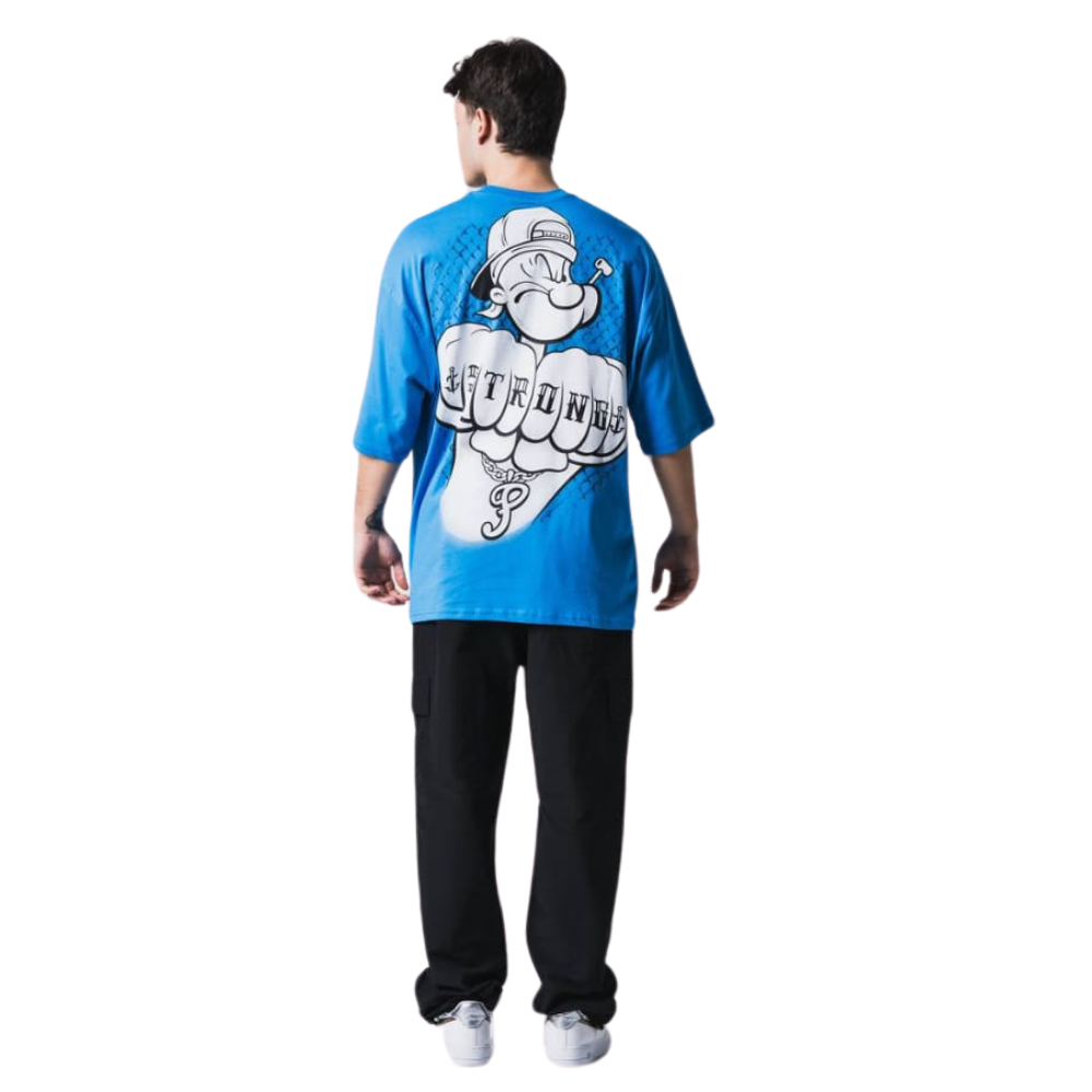 Owersize Kesim Yıpranmaz Dijital Baskı Temel Reis T-Shirt Açık Mavi Renk