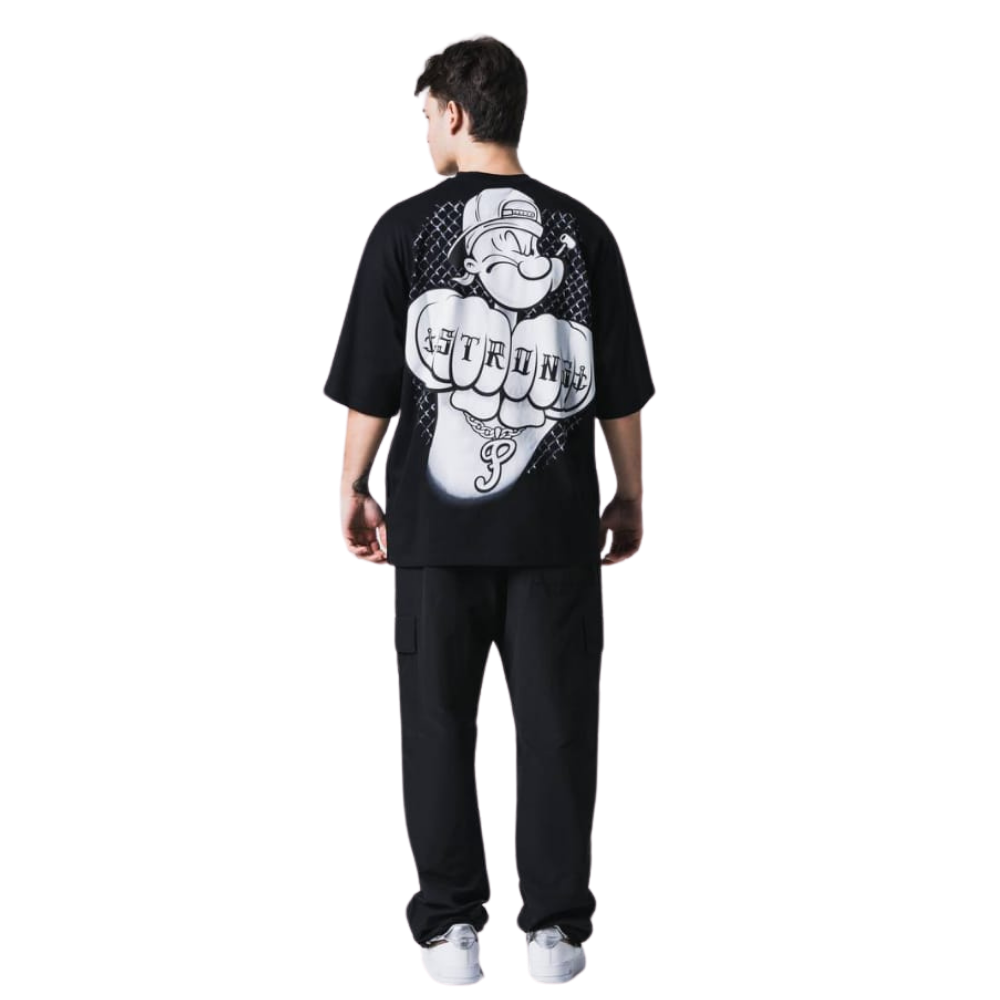 Owersize Kesim Yıpranmaz Dijital Baskı Temel Reis T-Shirt Siyah Renk