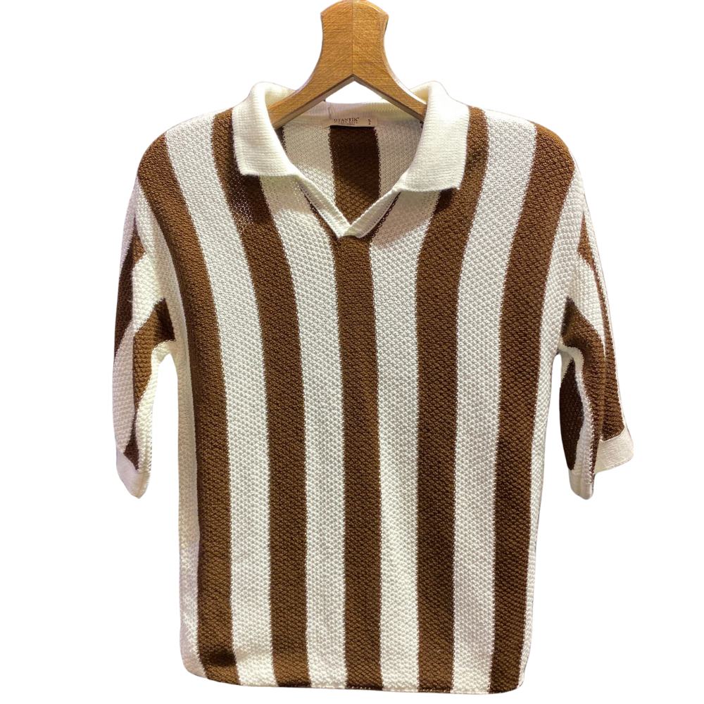 Polo Yaka Fakir Kol Çizgili Erkek Triko Kahve/Bej/Siyah Renklerde