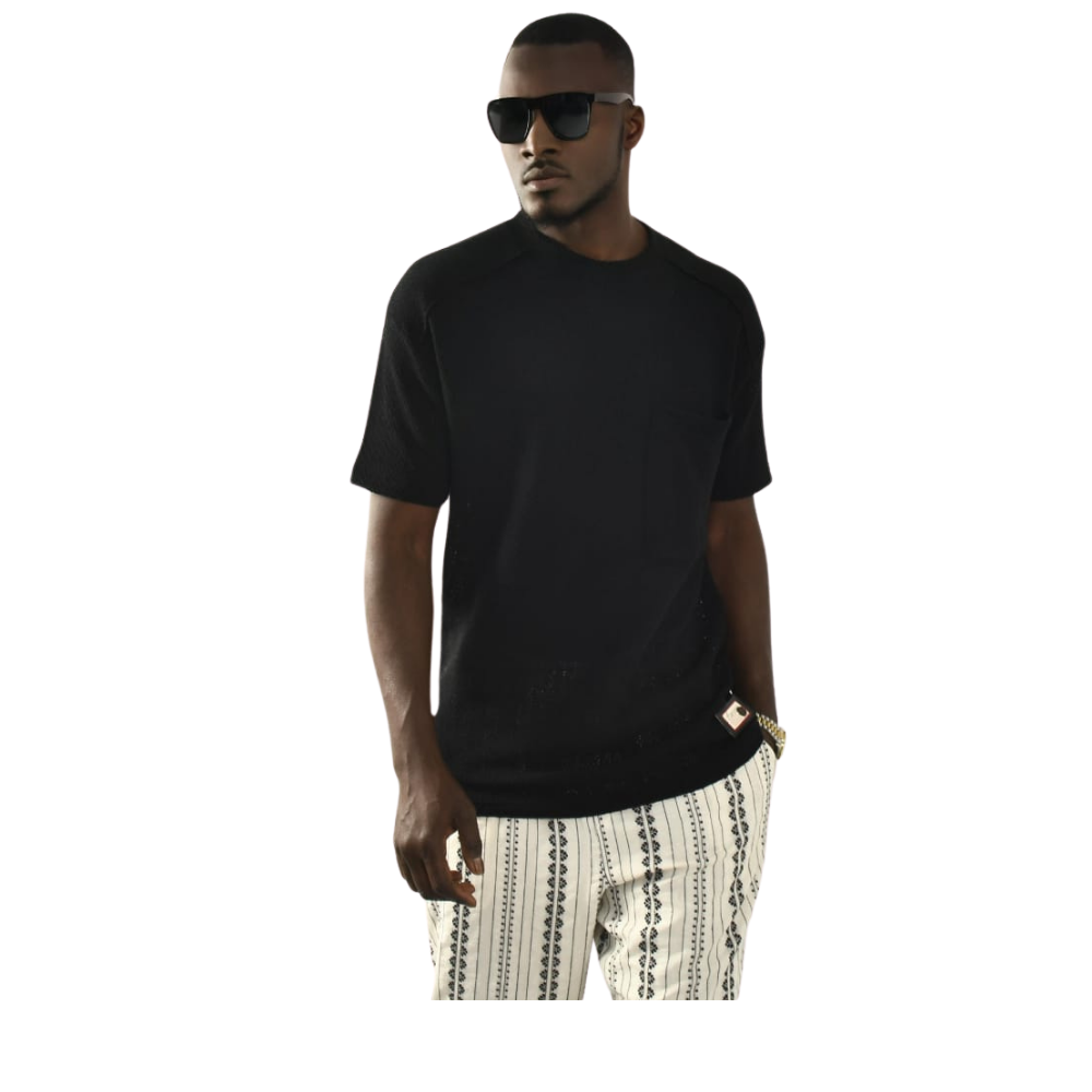 Sıfır Yaka Merserize Erkek T-Shirt Siyah Renk